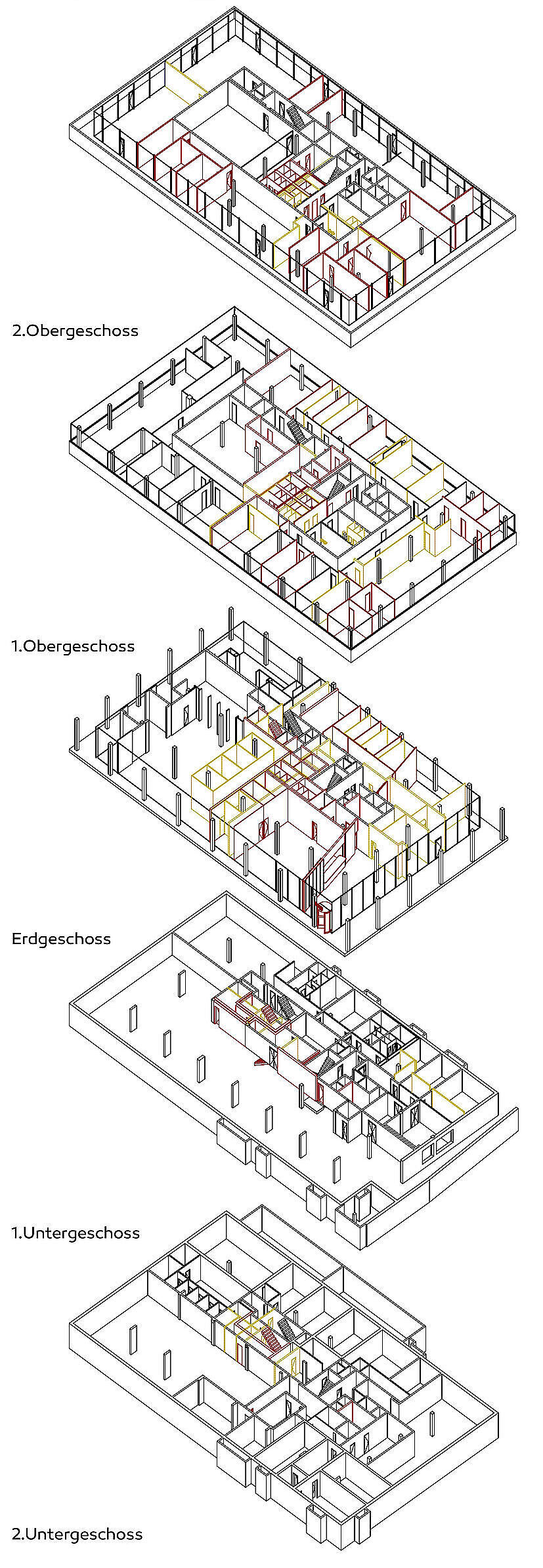 Der Grundriss entfaltet sich als räumliche Abfolge unterschiedlich stark definierter Bereiche und schafft so Orientierung, Sicherheit und eine hohe Aufenthaltsqualität.
